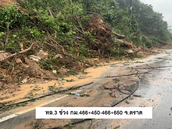 3. ทางหลวงหมายเลข 1378 อ.แม่ฟ้าหลวง สามัคคีใหม่ - ห้วยปู กม.ที่ 2+000 – 6+000 ดินสไลด์ทับเส้นทางสัญจร การจราจรผ่านไม่ได้ ไม่มีเส้นทางเลี่ยง
