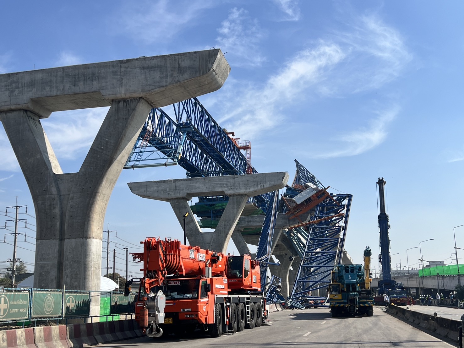 สำหรับความคืบหน้าการเคลียร์พื้นที่ เจ้าหน้าที่ได้ทำการติดตั้งอุปกรณ์ตรวจวัดการเคลื่อนตัวของโครงสร้างตอม่อเสร็จเรียบร้อยแล้วเมื่อวานนี้ และช่วงเช้าวันนี้ ทีมงานที่เกี่ยวข้องทุกฝ่าย กำลังประชุมวางแผนเพื่อหาข้อสรุปในการกำหนดจุดติดตั้งเครนเพื่อประคองโครงสร้างเหล็กและยกชิ้นส่วนพื้นสะพาน (segment) ที่ค้างอยู่ลงมา พร้อมทั้ง อุปกรณ์และชุดอุปกรณ์ Safety เพื่อความปลอดภัยในการเริ่มทยอยยกชิ้นส่วนสะพานคอนกรีตที่ยังติดค้างอยู่ลงมาด้านล่าง โดยการดำเนินการทั้งหมดนี้จะอยู่ภายใต้การกำกับและควบคุมของทีมวิศวกรผู้เชี่ยวชาญตลอดเวลา