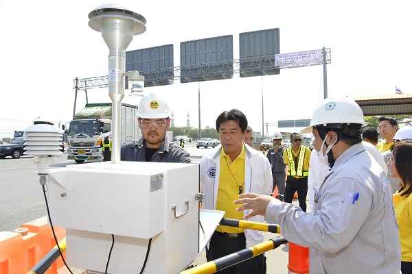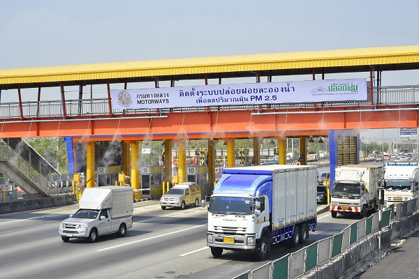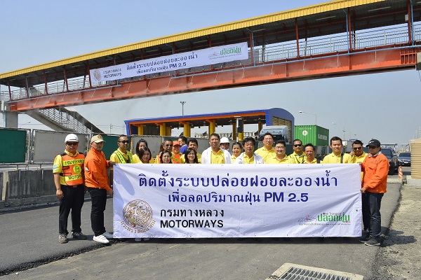 อธิบดีกรมทางหลวงกล่าวต่อไปว่า นอกจากนี้กรมทางหลวงยังจะดำเนินการวัดปริมาณฝุ่นละอองตามจุดต่างๆ พร้อมทั้งพิจารณาติดตั้งเครื่องปล่อยฝอยละอองน้ำ (High Pressure Water) ในจุดที่เหมาะสม เช่น บริเวณด่านเก็บเงินทางหลวงพิเศษระหว่างเมือง, บนถนนที่มีปริมาณการจราจรหนาแน่น โดยตั่งแต่วันที่ 27 มกราคม 2562 ที่ ผ่านมากรมทางหลวงได้ทดสอบการทำงานของระบบปล่อยฝอยละอองน้ำ (High Pressure Water System) ที่ติดตั้งในลักษณะถาวร บริเวณหน้าด่านเก็บเงินค่าธรรมเนียมผ่านทาง ทับช้าง 1(ทิศทางมุ่งหน้าบางพลี) และ ทับช้าง 2 (ทิศทางมุ่งหน้าบางปะอิน) บนทางหลวงพิเศษระหว่างเมืองหมายเลข 9 กรมทางหลวง จากการทดสอบระบบปล่อยฝอยละอองน้ำ (High Pressure Water System) ที่ด่านฯ ทับช้าง 1 และด่านฯ ทับช้าง 2 บนทางหลวงพิเศษหมายเลข 9 กรมทางหลวง พบว่า ฝอยละอองน้ำที่สะอาด ออกจากหัวฉีดขนาดเล็กด้วยแรงดัน 70 Bar ที่ความสูงประมาณ 5.5 เมตร มีอนุภาคขนาดเล็กและเบามากคล้ายควัน แต่จะไม่บดบังทัศนวิสัยในการขับขี่ และไม่ทำให้พื้นถนนเจิ่งนองเปียกแฉะเป็นอันตรายต่อผู้ใช้ทาง ทั้งนี้กรมทางหลวงขอความร่วมมือและรณรงค์ผู้ใช้ทางหลวงทุกท่านร่วมกันเป็นส่วนหนึ่งของการลดฝุ่นละออง PM2.5 โดยลดการใช้รถยนต์ส่วนตัวในการเดินทางระยะใกล้ ตรวจสภาพเครื่องยนต์ ให้อยู่ในสภาพดีไม่มีควันดำ ไม่จุดไฟเผาขยะหรือวัชพืชบนสองข้างทางหลวง เพราะนอกจากเป็นการป้องกันปัญหาฝุ่นละอองแล้ว ยังเป็นการป้องกันอุบัติเหตุบนทางหลวงร่วมกันอีกด้วย