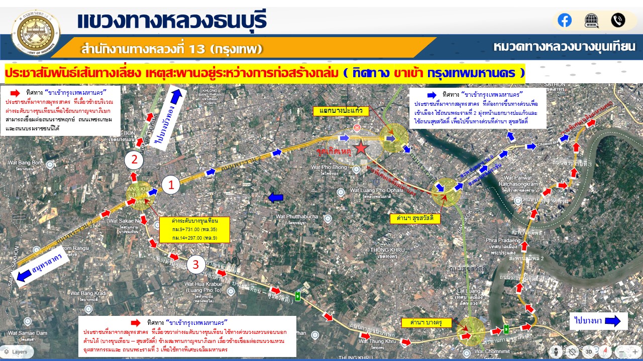 ทั้งนี้ ผู้ใช้เส้นทางดังกล่าวและประชาชนทั่วไปสามารถสอบถามรายละเอียดเพิ่มเติมหรือแจ้งเหตุต่างๆ ระหว่างดำเนินการได้ที่สายด่วนกรมทางหลวง 1586 (โทรฟรีทุกเครือข่ายตลอด 24 ชั่วโมง)