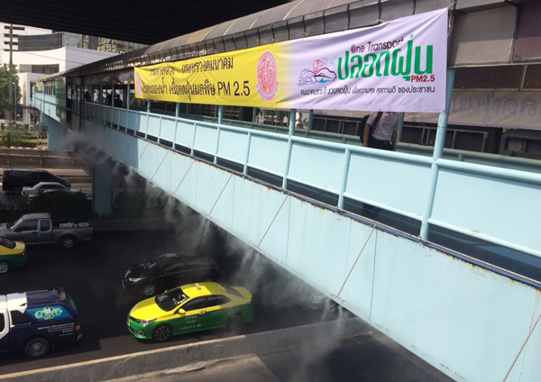 วันที่ 4 กุมภาพันธ์ 2562 เวลา 08.30 น. นายอานนท์ เหลืองบริบูรณ์ อธิบดีกรมทางหลวง เปิดเผยภายหลัง ให้การต้อนรับ นายอาคม เติมพิทยาไพสิฐ รัฐมนตรีว่าการกระทรวงคมนาคม ในการตรวจการแก้ปัญหาฝุ่นละออง ตามนโยบาย One transport ณ บริเวณสะพานลอยคนเดินข้ามหน้าสำนักงานใหญ่ปตท. ถนนวิภาวดีรังสิต ว่าตามที่กระทรวงคมนาคมมีนโยบาย “One transport ปลอดฝุ่น” กรมทางหลวง จะดำเนินการติดตั้งเครื่องฉีดพ่นละอองน้ำ (High pressure water) จำนวน 160 ตัว ซึ่งสามารถผลิตและปล่อยฝอยละอองน้ำประปาสะอาดได้ละเอียดขนาดประมาณ 20 ไมครอน เพื่อดักจับละอองฝุ่น PM2.5 บริเวณสะพานลอยคนเดินข้ามหน้าสำนักงานใหญ่ปตท. ถนนวิภาวดีรังสิต ทั้งนี้การดำเนินการดังกล่าวเป็นการบรรเทาปัญหาละอองฝุ่น PM2.5 โดยระบบฉีดน้ำดังกล่าวแต่จะไม่บดบังทัศนวิสัยในการขับขี่ และไม่ทำให้พื้นถนนเจิ่งนองเปียกแฉะเป็นอันตรายต่อผู้ใช้ทาง ซึ่งกรมทางหลวงจะขยายผลไปติดตั้งที่ถนนพระราม2 จำนวน 2 จุด และบริเวณหน้ามหาวิทยาลัยเกษตรศาสตร์ ถนนวิภาวดีฯ จำนวน 1 จุด หลังจากที่ได้ดำเนินการมาแล้วใน 2 จุด ได้แก่ พื้นที่หน้าด่านฯ ทับช้าง 1 (มุ่งหน้าบางพลี) และพื้นที่หน้าด่านฯ ทับช้าง 2 (มุ่งหน้า บางปะอิน) ซึ่งได้ผลเป็นที่น่าพอใจในการบรรเทาปัญหาฝุ่นละออง