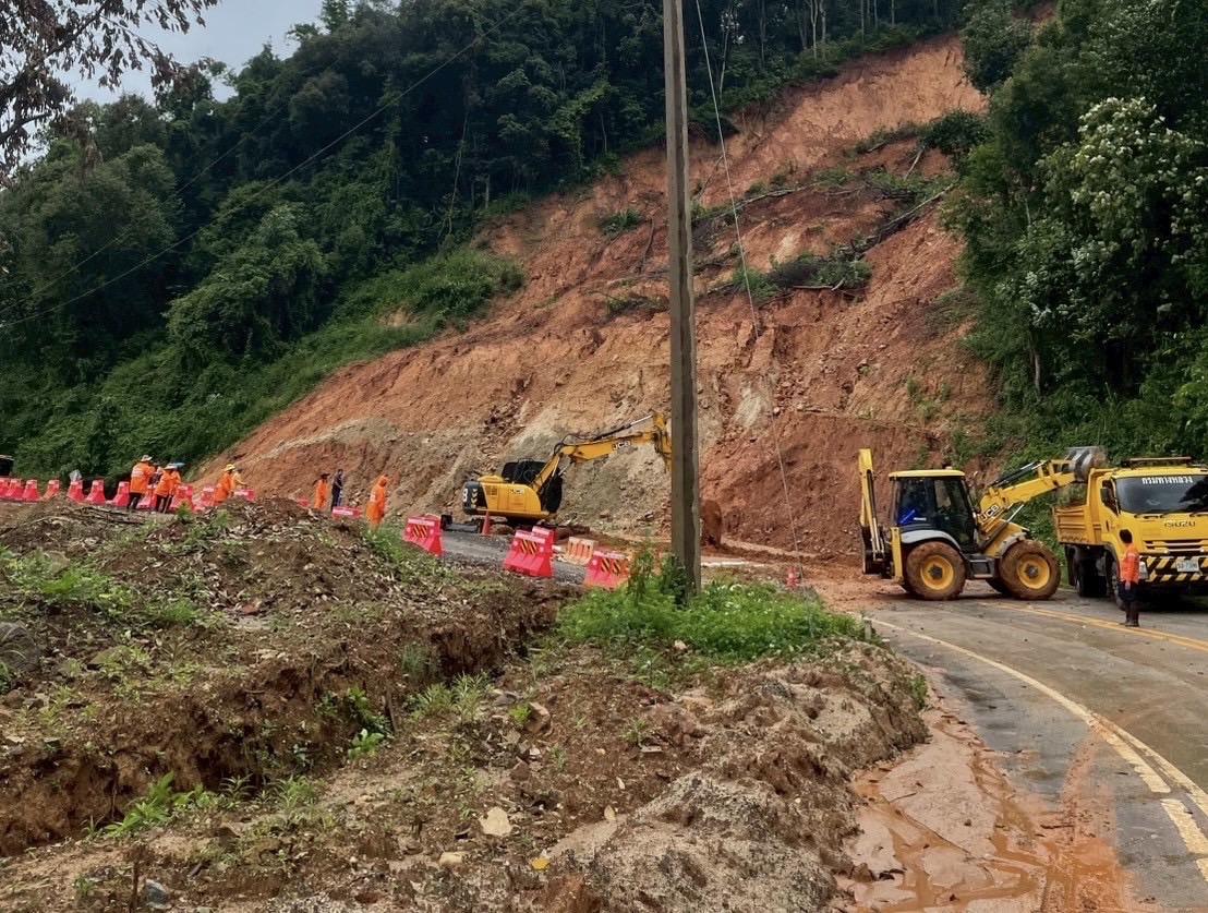 6. ทล.1097 เชียงกลาง - หางทุ่ง ช่วงกม.ที่ 7+500 – 7+600 ดินสไลด์ปิดทับผิวทาง