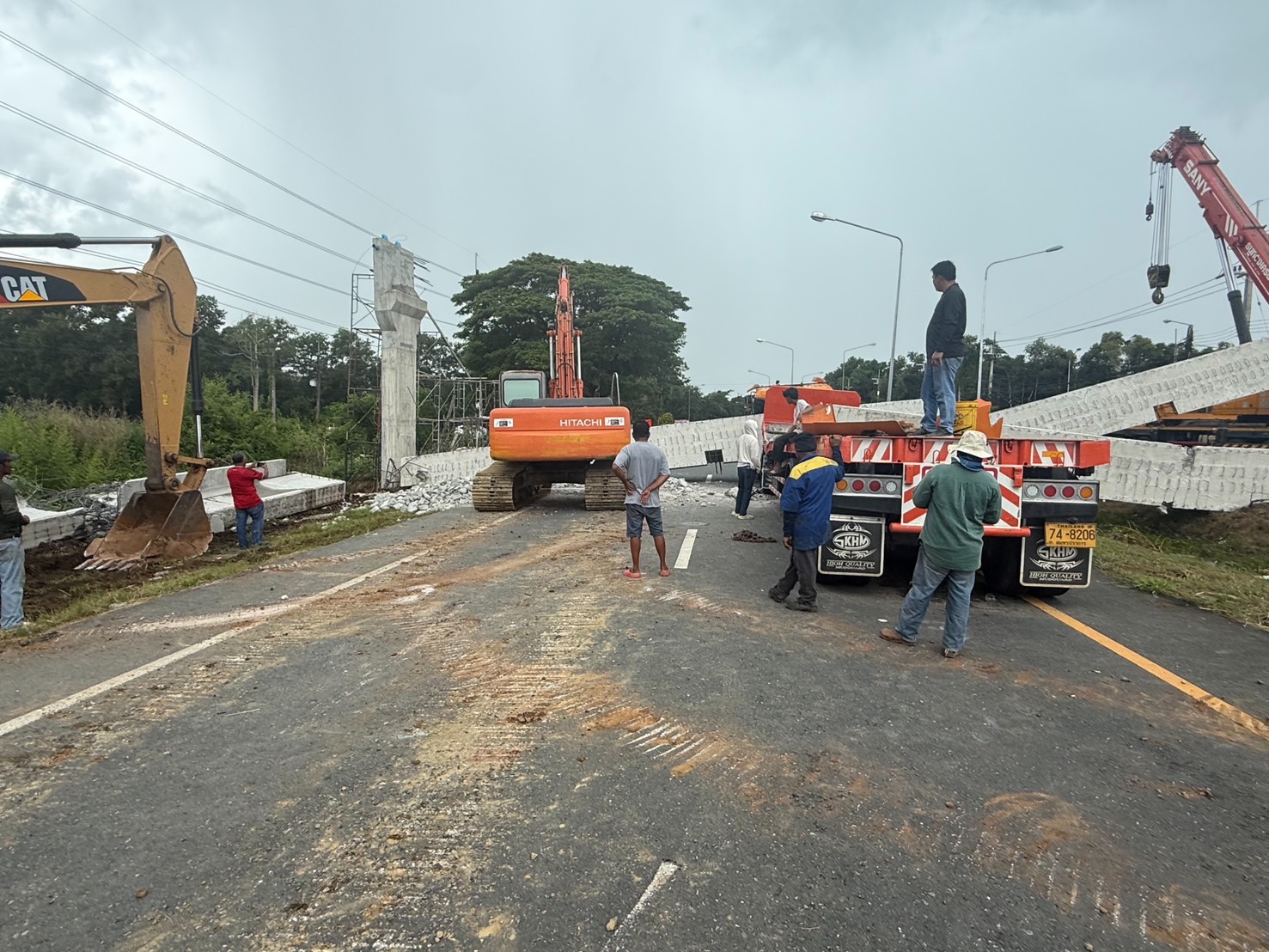 “กรมทางหลวง” ส่งเจ้าหน้าที่เร่งเคลียร์พื้นที่คานสะพานลอยร่วง บริเวณ บ.นาไทร คาดวันนี้การจราจรกลับสู่ภาวะปกติ ไม่มีผู้เสียชีวิต-บาดเจ็บ