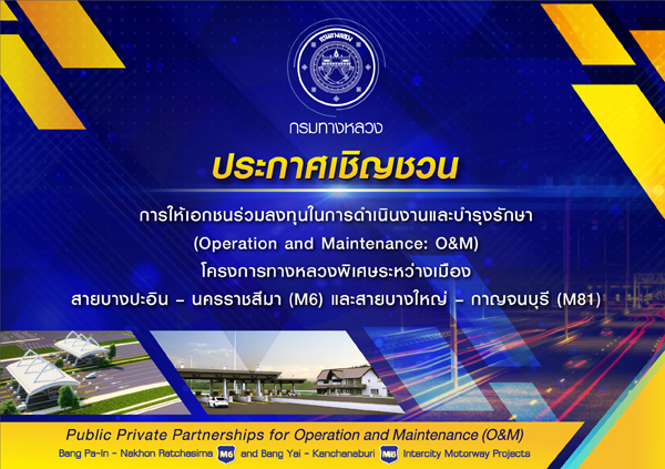 นายอานนท์ เหลืองบริบูรณ์ อธิบดีกรมทางหลวง เปิดเผยว่า กรมทางหลวง ได้ประกาศเชิญชวนเอกชนที่สนใจเข้าร่วมประกวดข้อเสนอการให้เอกชน ร่วมลงทุนโครงการทางหลวงพิเศษระหว่างเมือง สายบางปะอิน-นครราชสีมา และสายบางใหญ่-กาญจนบุรี ในส่วนของการให้เอกชนร่วมลงทุนในการดำเนินงานและบำรุงรักษา (Operation and Maintenance: O&M) โดยเอกชนเป็นผู้ออกแบบและลงทุนก่อสร้าง งานระบบและองค์ประกอบอื่นที่เกี่ยวข้อง โดยรัฐเป็นเจ้าของกรรมสิทธิ์ทรัพย์สินที่เอกชนลงทุนก่อสร้าง รวมถึงรายได้ทั้งหมดจากค่าธรรมเนียมผ่านทาง และให้เอกชนเป็นผู้ดำเนินงานและบำรุงรักษาของโครงการทั้งหมด ทั้งในส่วนของงานโยธาที่รัฐเป็นผู้ลงทุนและงานส่วนที่เอกชนเป็น ผู้ลงทุน ตลอดจนเป็นผู้ดำเนินการบริหารจัดเก็บค่าธรรมเนียมผ่านทาง โดยเอกชนได้รับค่าตอบแทนเป็นเงินค่าก่อสร้างงานระบบและองค์ประกอบอื่นที่เกี่ยวข้อง ค่าบำรุงรักษา และค่าบริหารจัดเก็บค่าธรรมเนียม รวมทั้งงานอื่นที่เกี่ยวข้อง ตามขอบเขตและเงื่อนไขที่กำหนด (ภายใต้แนวทางการให้เอกชนร่วมลงทุนในรูปแบบ PPP Gross Cost) โครงการทางหลวงพิเศษระหว่างเมืองสายบางปะอิน-นครราชสีมา มีระยะทางรวมประมาณ 196 กิโลเมตร และมีด่านเก็บค่าธรรมเนียมผ่านทาง จำนวน 9 แห่ง ส่วนสายบางใหญ่-กาญจนบุรี มีระยะทางรวมประมาณ 96 กิโลเมตร และมีด่านเก็บค่าธรรมเนียมผ่านทาง จำนวน 8 แห่ง โดยแบ่งการดำเนินงานออกเป็น 2 ระยะ ดังนี้