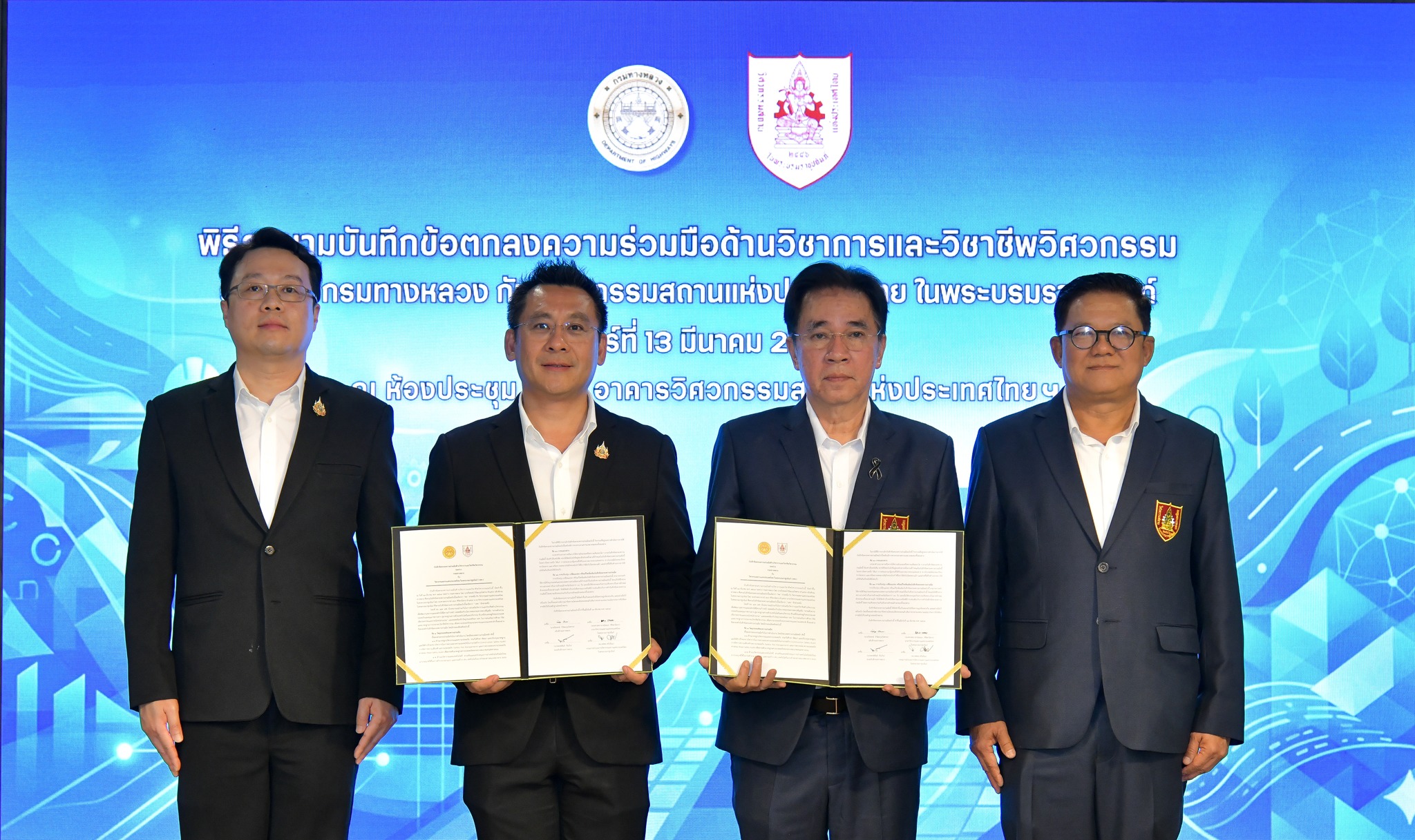 การลงนามในครั้งนี้ ได้รับเกียรติจาก นายปิยพงษ์ จิวัฒนกุลไพศาล อธิบดีกรมทางหลวง และ รองศาสตราจารย์เอนก ศิริพานิชกร นายกวิศวกรรมสถานแห่งประเทศไทย ในพระบรมราชูปถัมภ์ เป็นผู้ลงนามในบันทึกข้อตกลงความร่วมมือดังกล่าว