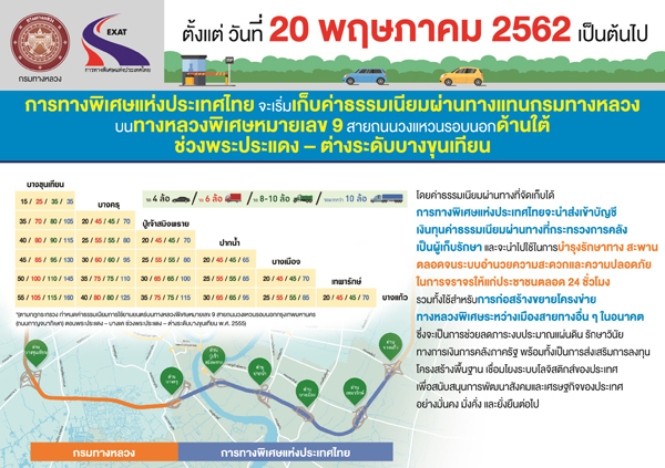 อธิบดีกรมทางหลวง เปิดเผยต่อไปอีกว่าค่าธรรมเนียมผ่านทางที่จัดเก็บได้การทางพิเศษแห่งประเทศไทยจะนำส่ง เพื่อเข้าบัญชีเงินทุนค่าธรรมเนียมผ่านทาง ที่กระทรวงการคลังเป็นผู้เก็บรักษา โดยจะนำไปใช้ในการบำรุงรักษาทางและ สะพาน ตลอดจนระบบอำนวยความสะดวกและความปลอดภัยในการจราจรให้แก่ประชาชนตลอด 24 ชั่วโมง รวมทั้งใช้สำหรับการก่อสร้างขยายโครงข่ายทางหลวงพิเศษระหว่างเมืองสายทางอื่นๆในอนาคต ซึ่งจะเป็นการช่วยลดภาระงบประมาณแผ่นดิน รักษาวินัยทางการเงินการคลังภาครัฐ พร้อมทั้งเป็นการส่งเสริมการลงทุนโครงสร้างพื้นฐานเชื่อมโยงระบบโลจิสติกส์ของประเทศ เพื่อสนับสนุนการพัฒนาสังคมและเศรษฐกิจอย่างมั่นคง มั่งคั่ง และยั่งยืนต่อไป