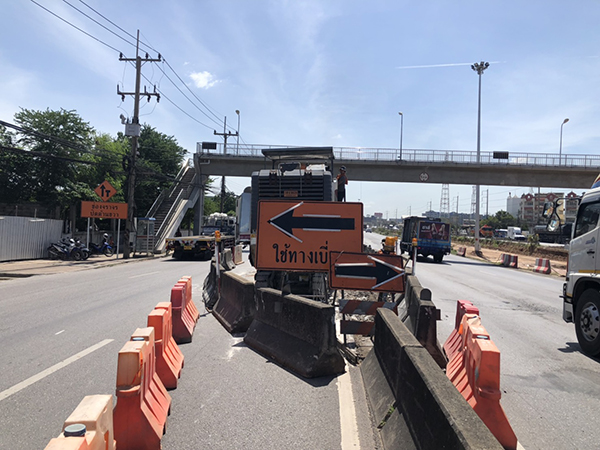 2. เบี่ยงการจราจรบริเวณช่องทางหลัก 1 ช่องจราจร ระหว่าง กม.17+400 – กม.18+600 ด้านขาออก และช่องทางขนาน ระหว่าง กม.19+200 – กม.21+350 ด้านขาออก