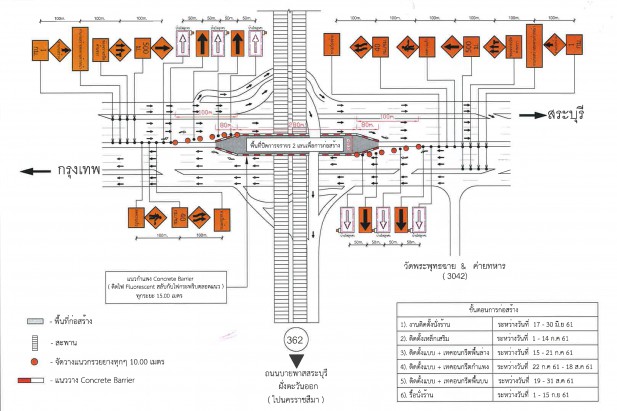 กรมทางหลวง โดยสำนักก่อสร้างสะพาน จะทำการก่อสร้างเสาตอม่อสะพานตรงบริเวณร่องกลางทางหลวงหมายเลข 1 (ถนนพหลโยธิน) ระหว่าง กม.99+000 ถึง 100+000 บริเวณสะพานต่างระดับพระพุทธฉาย จ.สระบุรี จึงมีความจำเป็นต้องเบี่ยงและปิดการจราจรเพื่อตั้งนั่งร้านก่อสร้างคานขวางของงานสะพาน Ramp 405, Ramp 406, Ramp 411 รวม 3 แห่ง โดยมีกำหนดการปิดเบี่ยงการจราจร ตั้งแต่บัดนี้เป็นต้นไปจนถึง วันที่ 15 กันยายน 2561 หรือจนกว่างานจะแล้วเสร็จ