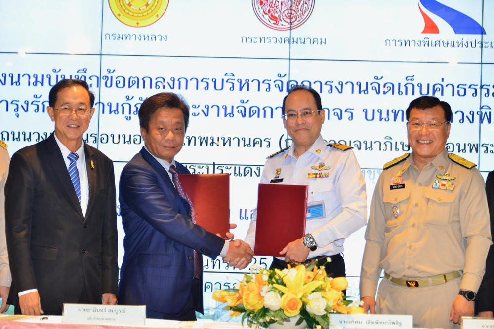 วันนี้ (25 มิ.ย.61) เวลา 9.00 น. ณ ห้องประชุมชั้น 3 อาคารสโมสรและหอประชุม กระทรวงคมนาคม นายอาคม เติมพิทยาไพสิฐ เป็นประธานในพิธีลงนามบันทึกข้อตกลงการบริหารจัดการงานจัดเก็บค่าธรรมเนียมผ่านทาง งานบำรุงรักษา งานกู้ภัย และงานจัดการจราจร บนทางหลวงพิเศษหมายเลข 9 สายถนนวงแหวนรอบนอกกรุงเทพมหานคร (ถนนกาญจนาภิเษก) ตอนพระประแดง-บางแค ช่วงพระประแดง-ต่างระดับบางขุนเทียน ระหว่างกรมทางหลวง กับการทางพิเศษแห่งประเทศไทย โดยมีนายธานินทร์ สมบูรณ์ อธิบดีกรมทางหลวง และ นายสุทธิศักดิ์ วรรธนวินิจ รองผู้ว่าการฝ่ายกฎหมายและกรรมสิทธิ์ที่ดิน รักษาการในตำแหน่งผู้ว่าการการทางพิเศษแห่งประเทศไทยเป็นผู้ลงนามในบันทึกข้อตกลง
