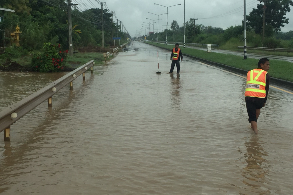 1.ทางหลวงหมายเลข 2259 เสลภูมิ – คำโพนสูง ท้องที่อำเภอเสลภูมิ จังหวัดร้อยเอ็ด ช่วงกม.ที่ 9 – 11 ระดับน้ำสูง 15 ซม. (ผ่านได้เฉพาะรถเล็ก น้ำท่วมทางเบี่ยง เนื่องจากมีโครงการก่อสร้างสะพาน) เส้นทางเลี่ยงให้ใช้ทางหลวงชนบท ยส.2022 กับ ทางหลวงชนบท รอ.4011 แทน
