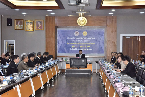 ในการนี้ รัฐมนตรีว่าการกระทรวงฯ ได้มอบนโยบายให้ ทล. เตรียมความพร้อมการจัดซื้อจัดจ้าง รองรับ พ.ร.บ.งบประมาณรายจ่ายประจำปีงบประมาณ 2563 พร้อมทั้งวางแผนการดำเนินโครงการและการดำเนินการเบิกจ่ายงบประมาณ โดยต้องตรวจสอบรายละเอียดสัญญาโครงการต่างๆ ให้รอบคอบ การเน้นย้ำการลดจุดเกิดอุบัติเหตุบนทางหลวง การสำรวจการติดตั้งไฟฟ้าแสงสว่างบนทางหลวง รวมถึงการปลูกต้นไม้ในเขตทางหลวงที่ไม่เป็นอันตรายต่อผู้ขับขี่เพื่อลดฝุ่น PM.2.5 ตามนโยบายนายกรัฐมนตรี