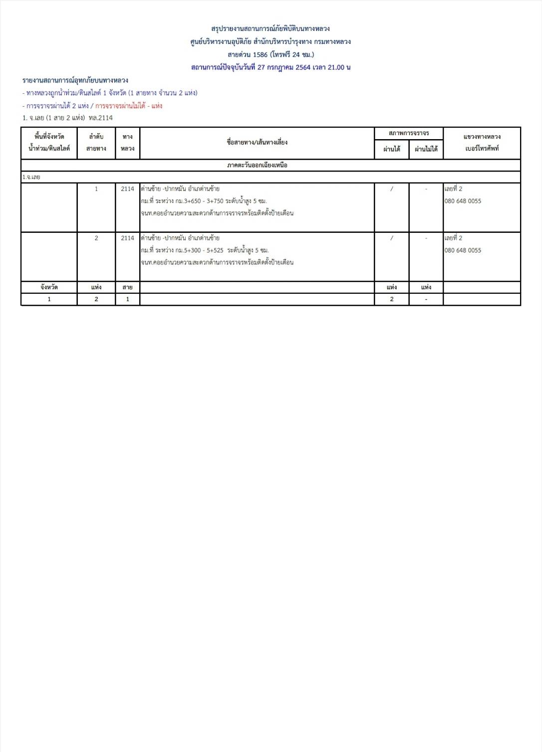 กรมทางหลวงขอรายงานสถานการณ์ น้ำท่วม และดินสไลด์ ในโครงข่ายทางหลวง