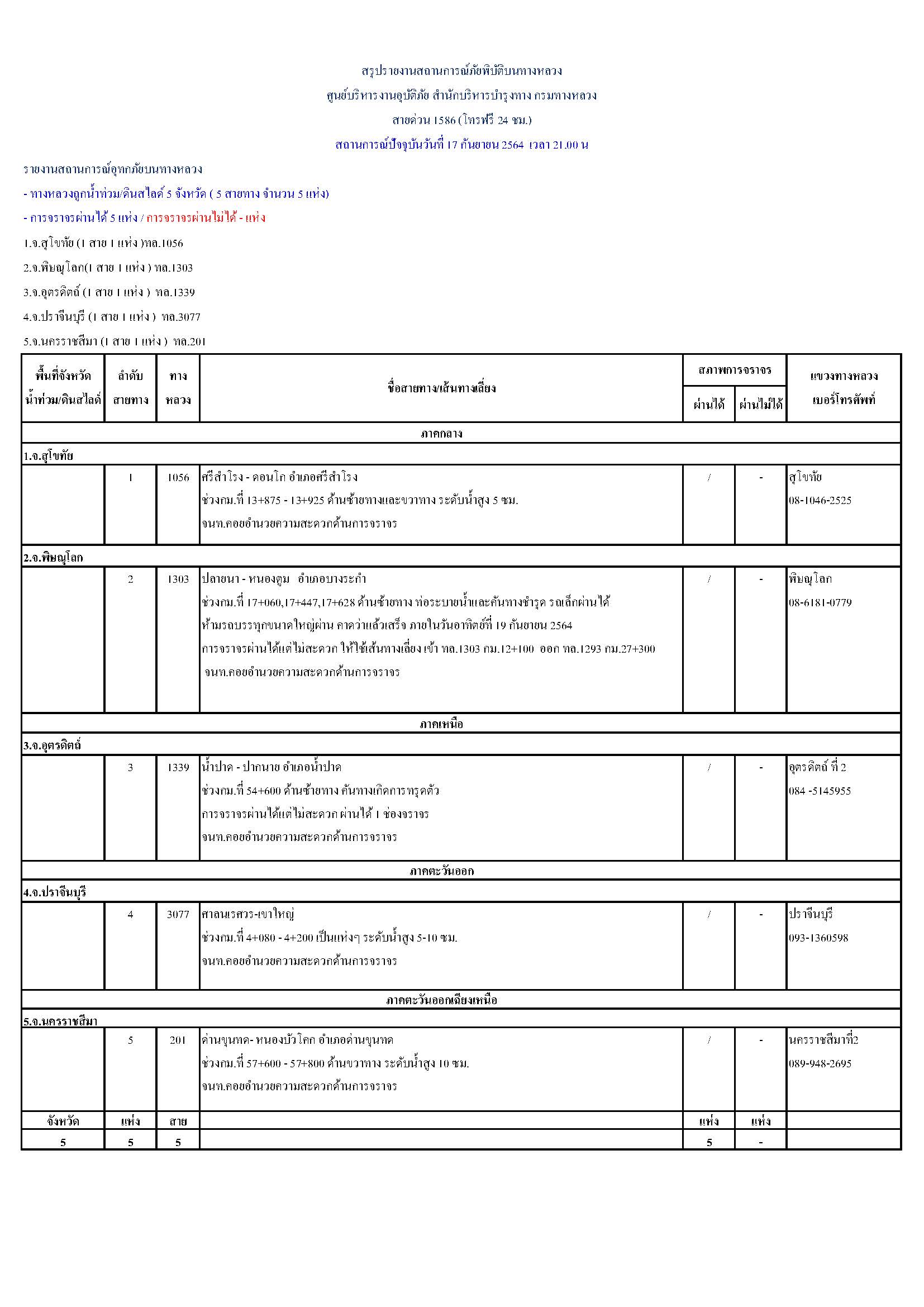 กรมทางหลวงขอรายงานสถานการณ์ น้ำท่วม และดินสไลด์ ในโครงข่ายทางหลวง