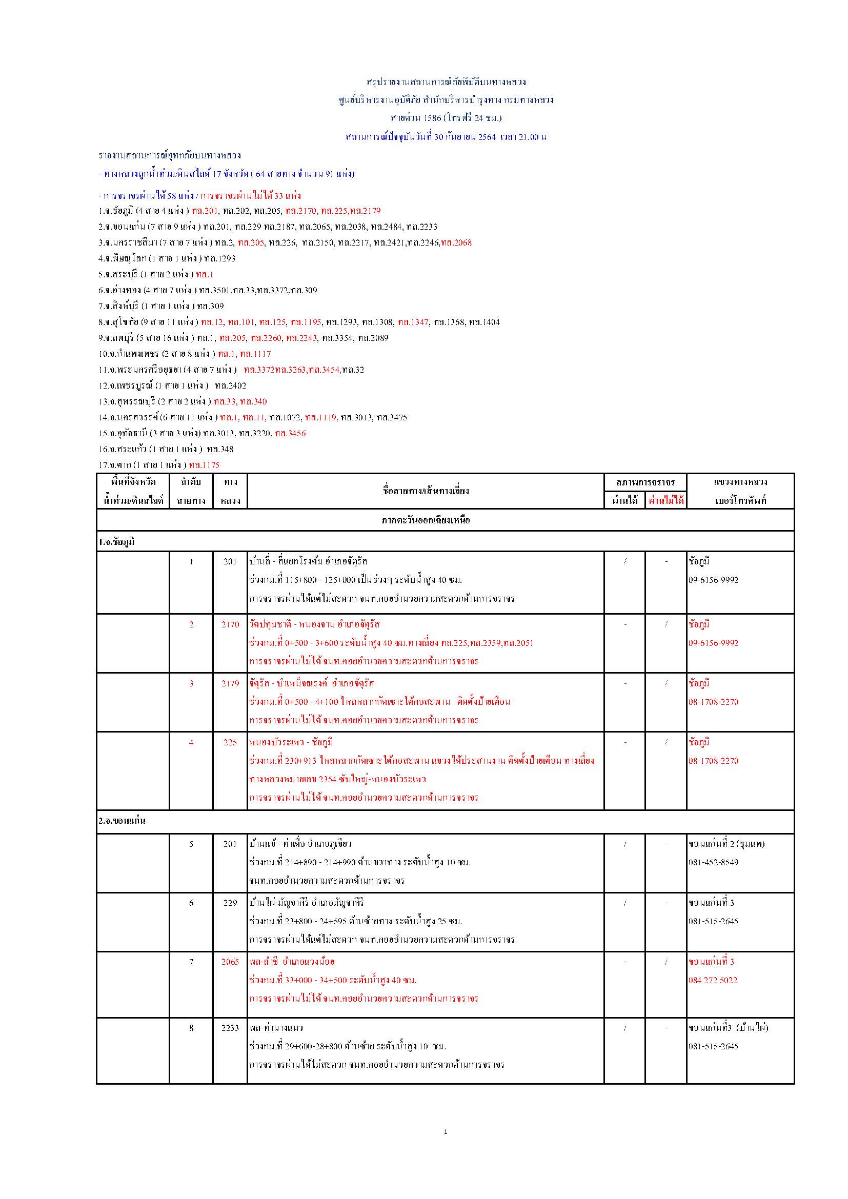 กรมทางหลวงขอรายงานสถานการณ์ น้ำท่วม และดินสไลด์ ในโครงข่ายทางหลวง