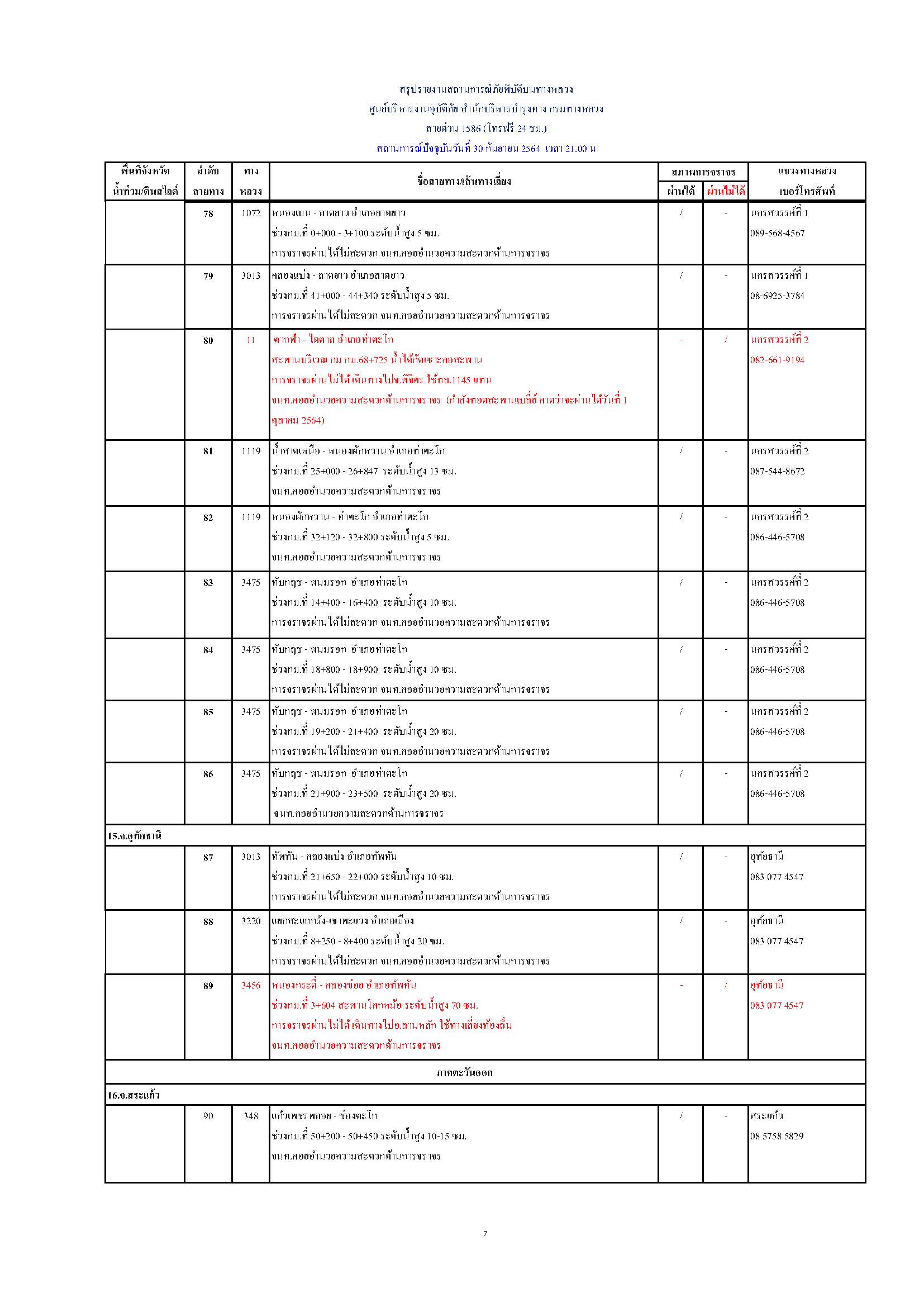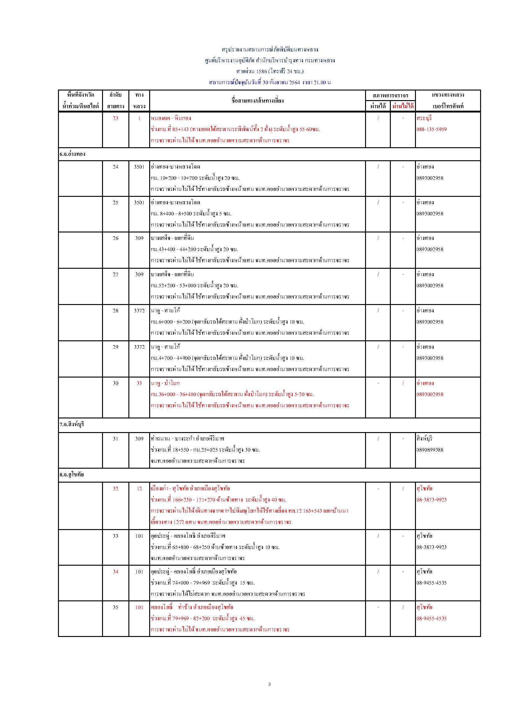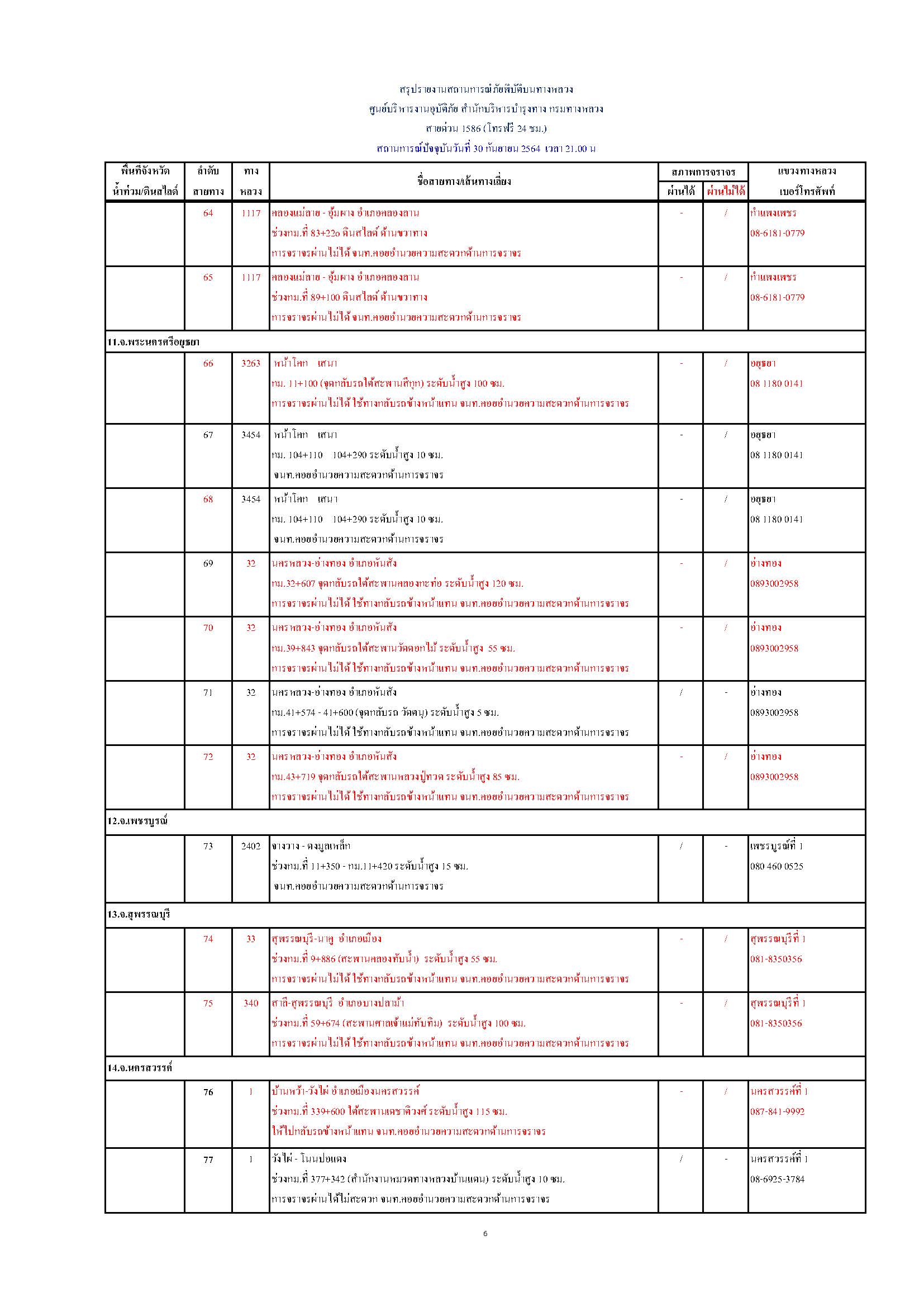- การจราจรผ่านไม่ได้ 6 แห่ง
