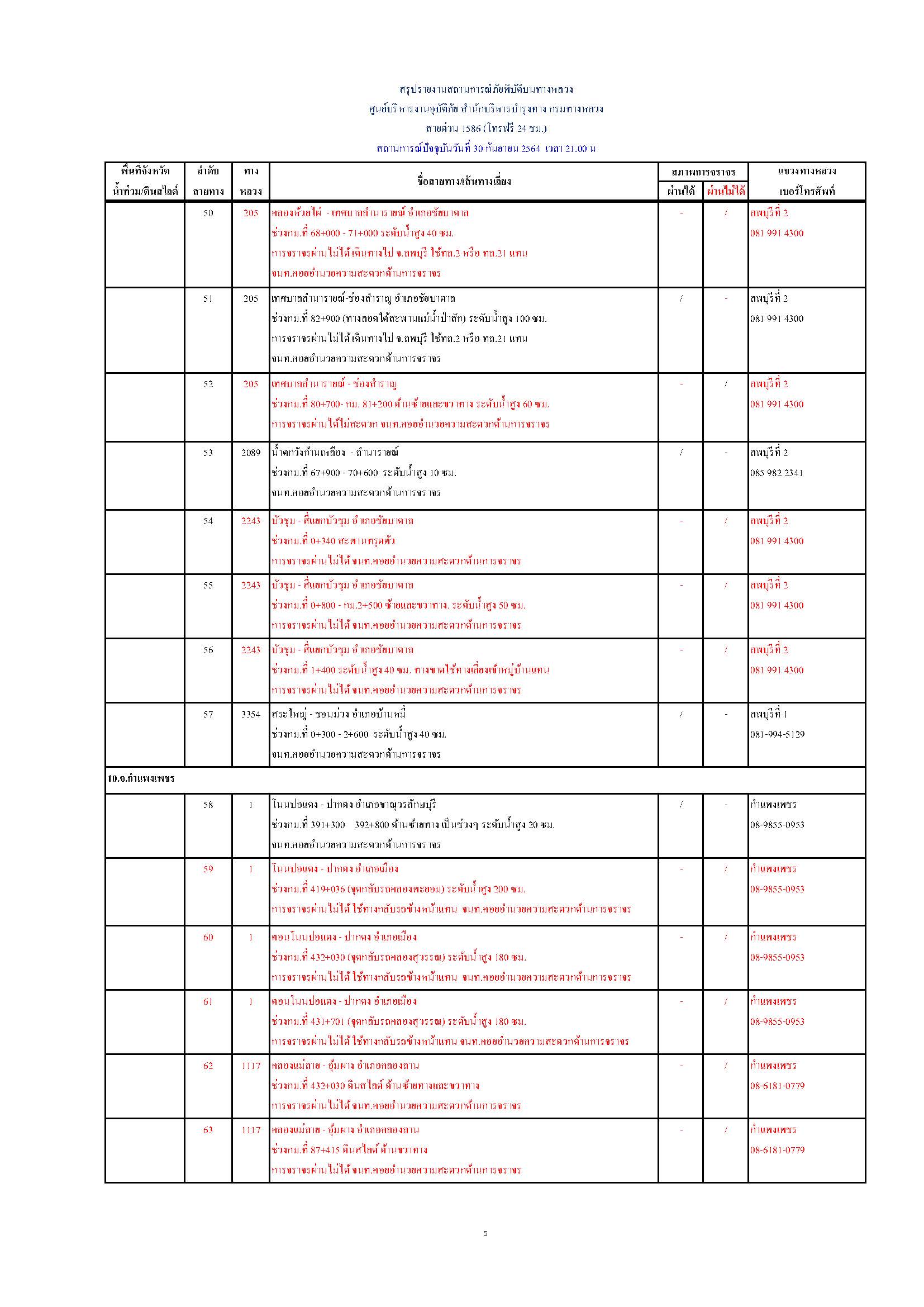 - การจราจรผ่านไม่ได้ 5 แห่ง