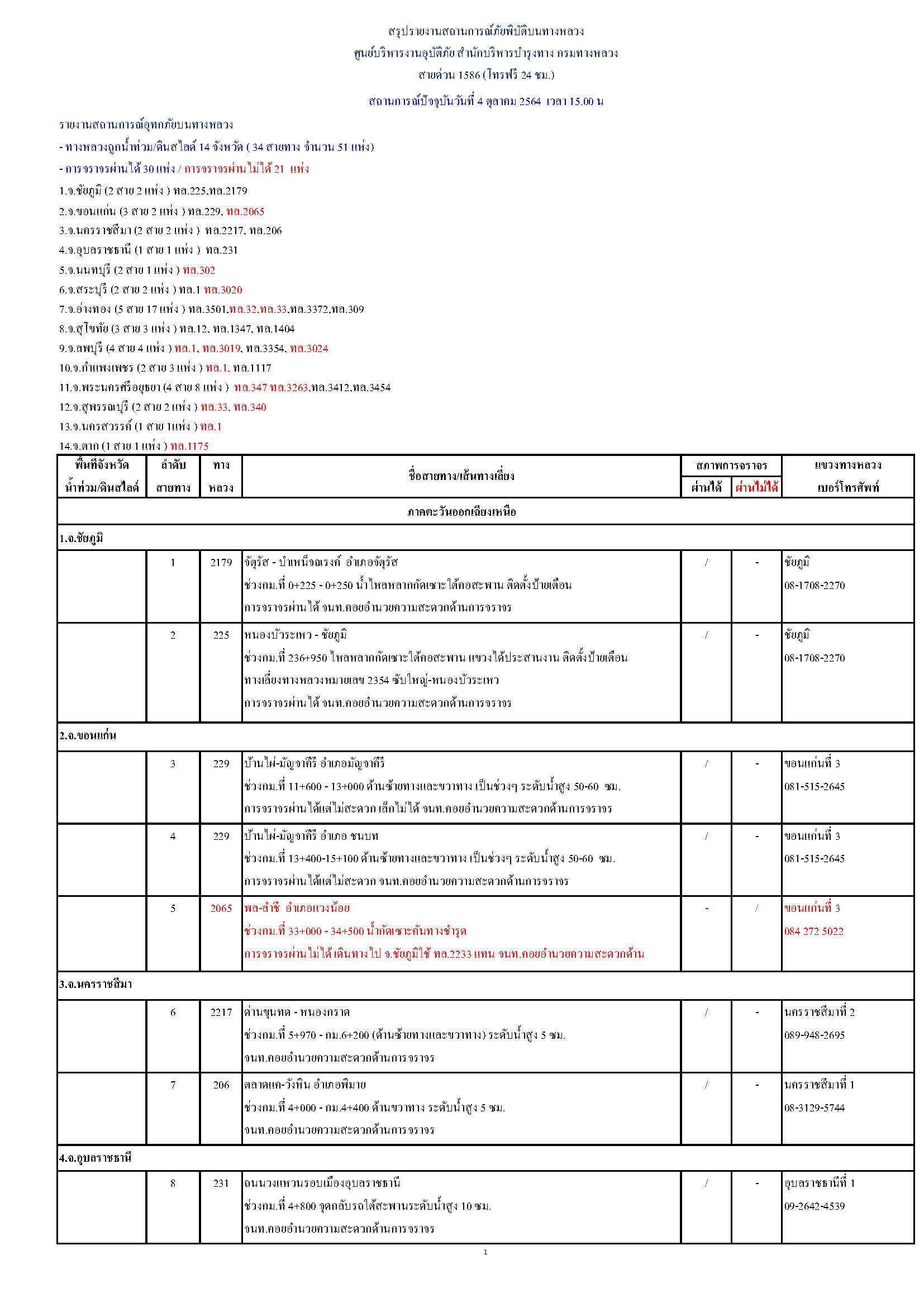 กรมทางหลวงขอรายงานสถานการณ์ น้ำท่วม และดินสไลด์ ในโครงข่ายทางหลวง