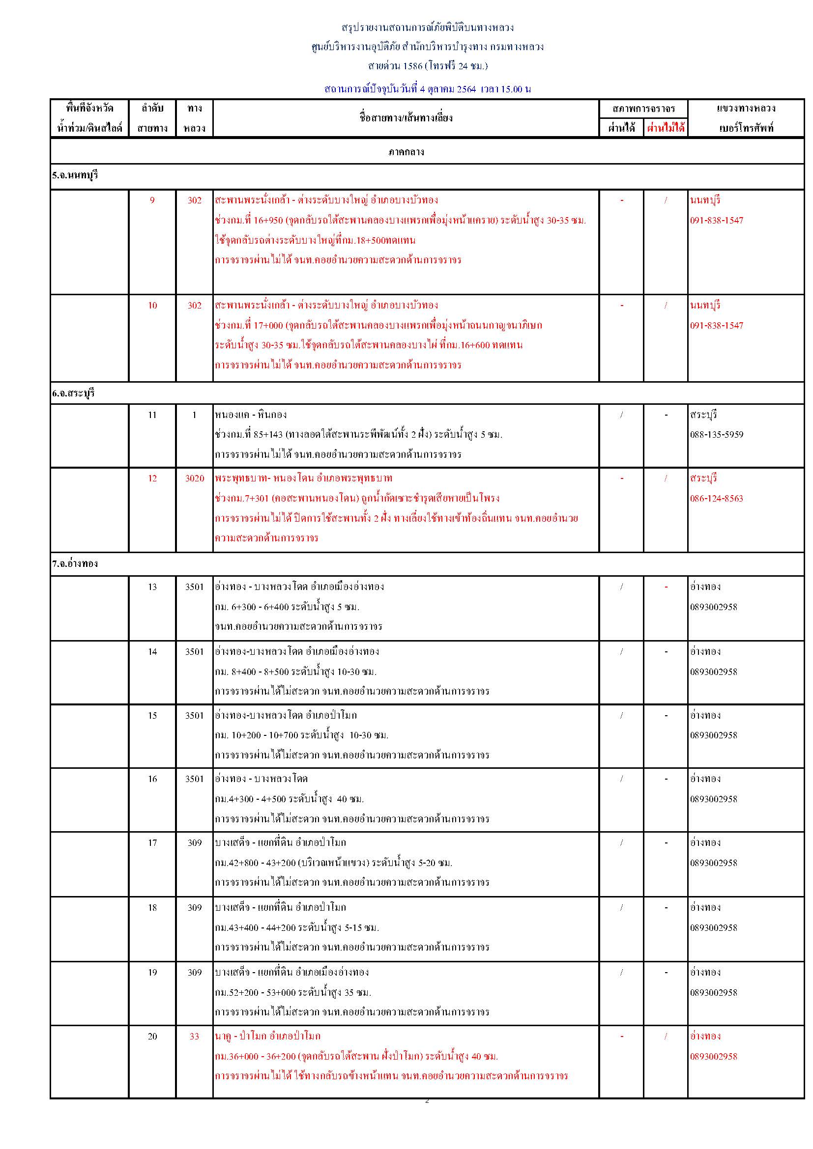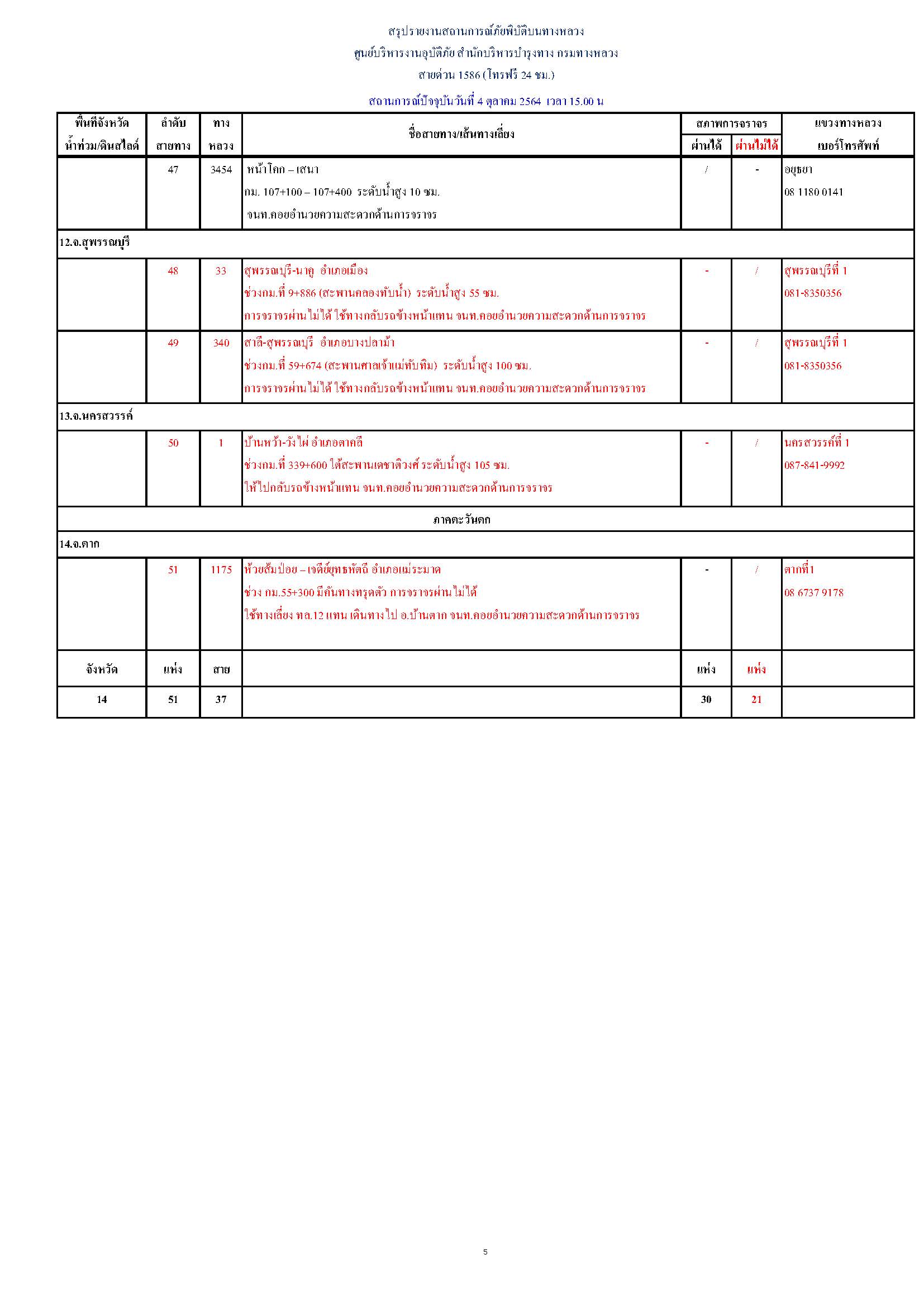 - การจราจรผ่านไม่ได้ 5 แห่ง