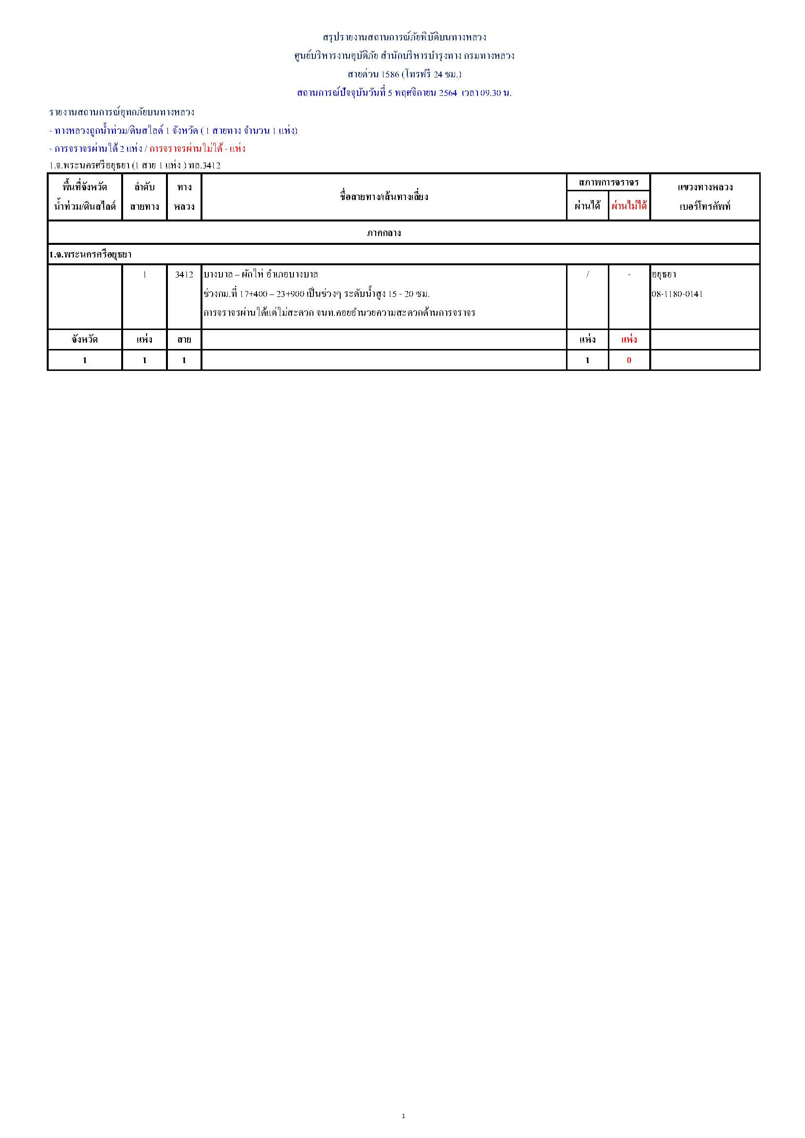 กรมทางหลวงขอรายงานสถานการณ์ น้ำท่วม และดินสไลด์ ในโครงข่ายทางหลวง วันศุกร์ที่ 5 พฤศจิกายน 2564 เวลา 09.30 น. ดังนี้