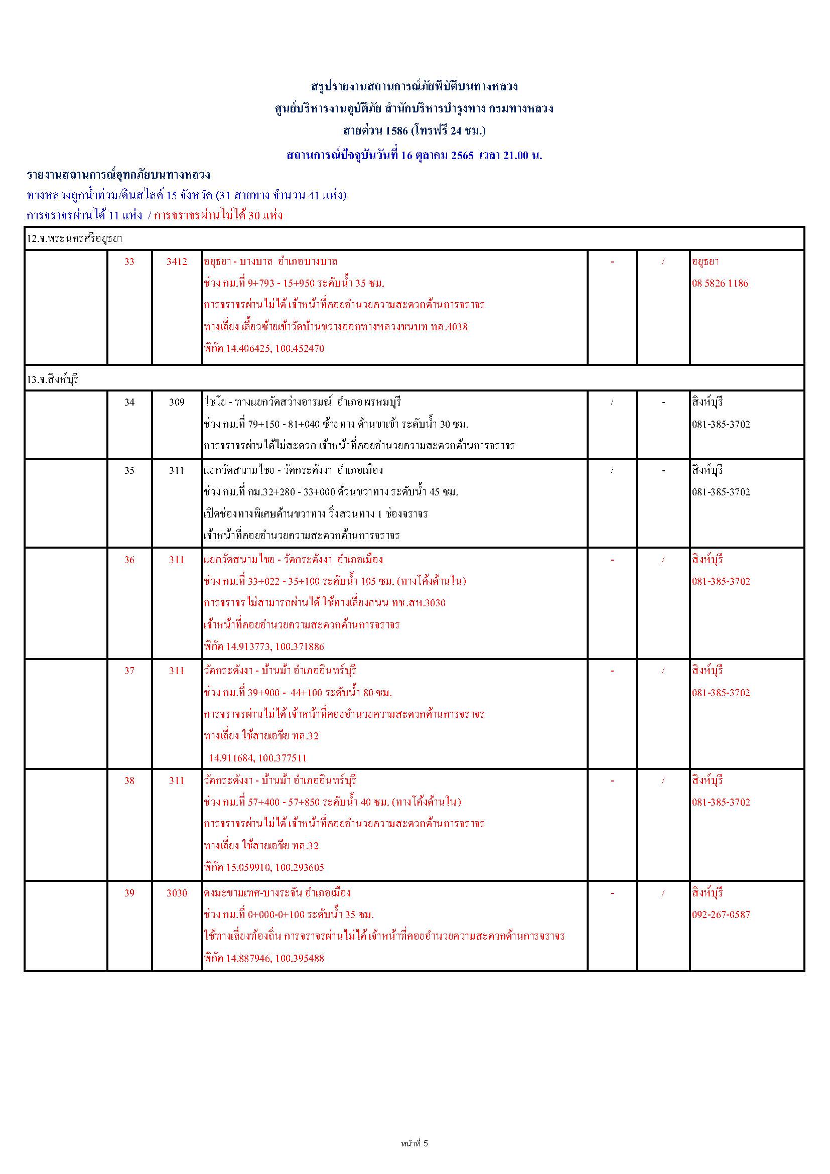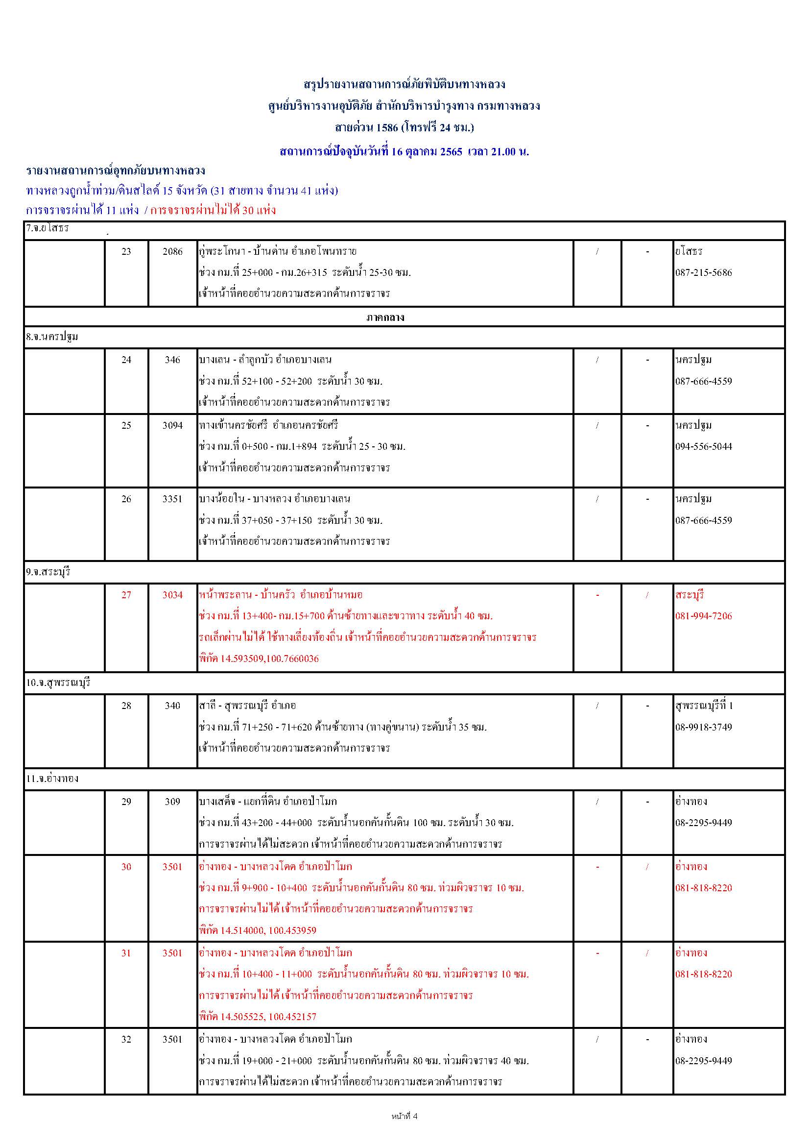 | สรุปสถานการณ์อุทกภัยบนทางหลวง วันอาทิตย์ที่ 16 ตุลาคม 2565 เวลา 18.00 น. | 171 | Download |