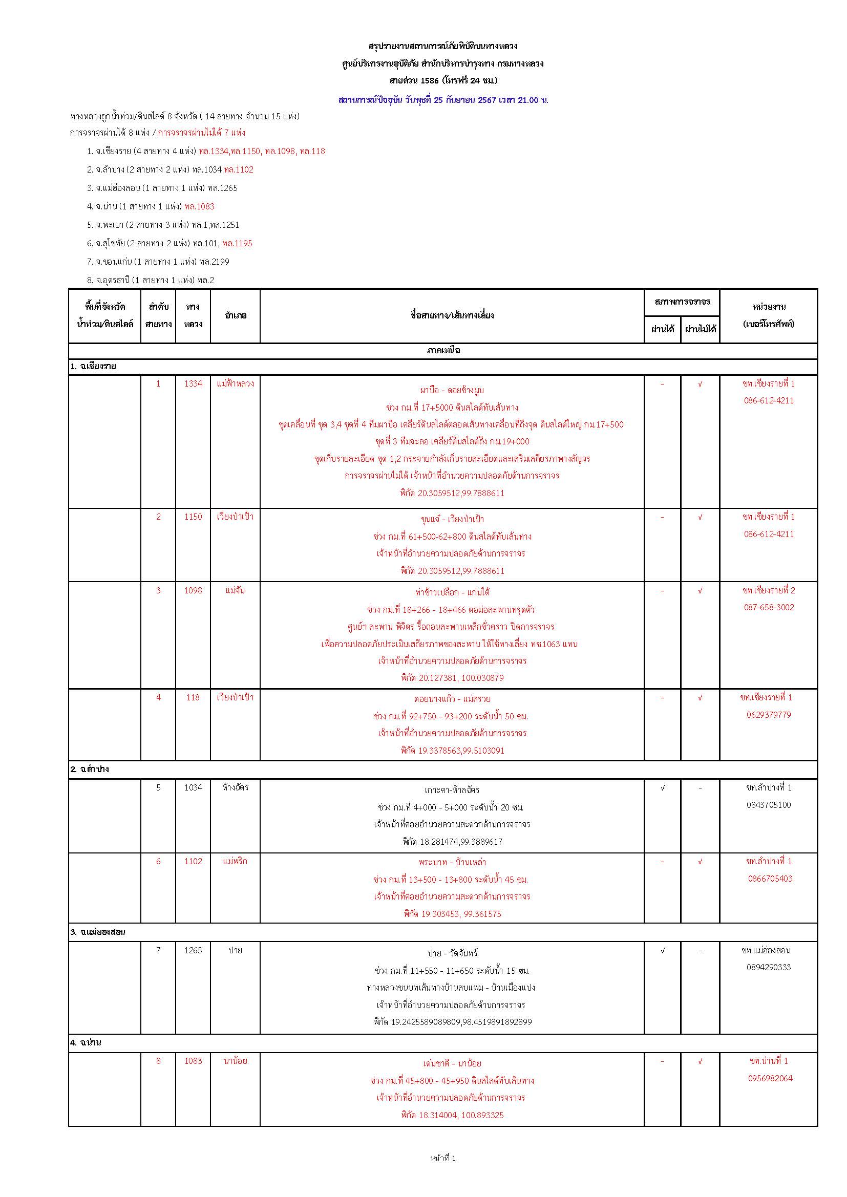 กรมทางหลวงขอรายงานสถานการณ์ น้ำท่วม และดินสไลด์ ในโครงข่ายทางหลวง
