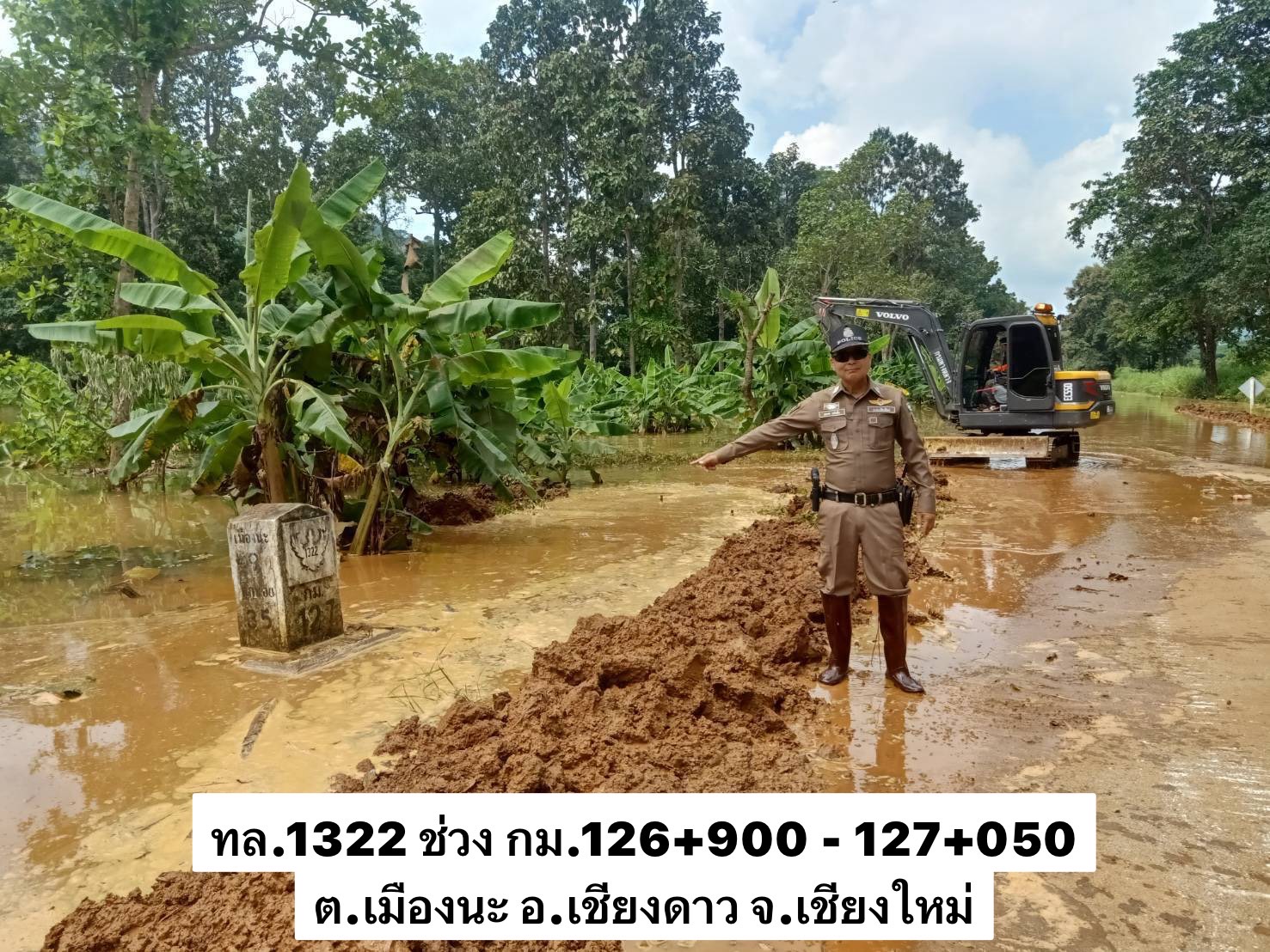 - แขวงฯ เชียงใหม่ที่ 3 นำเครื่องจักร สูบน้ำออกจากพื้นที่ วาง Big Bag ปรับทางระบายน้ำ เพื่อให้รถสัญจรผ่านได้