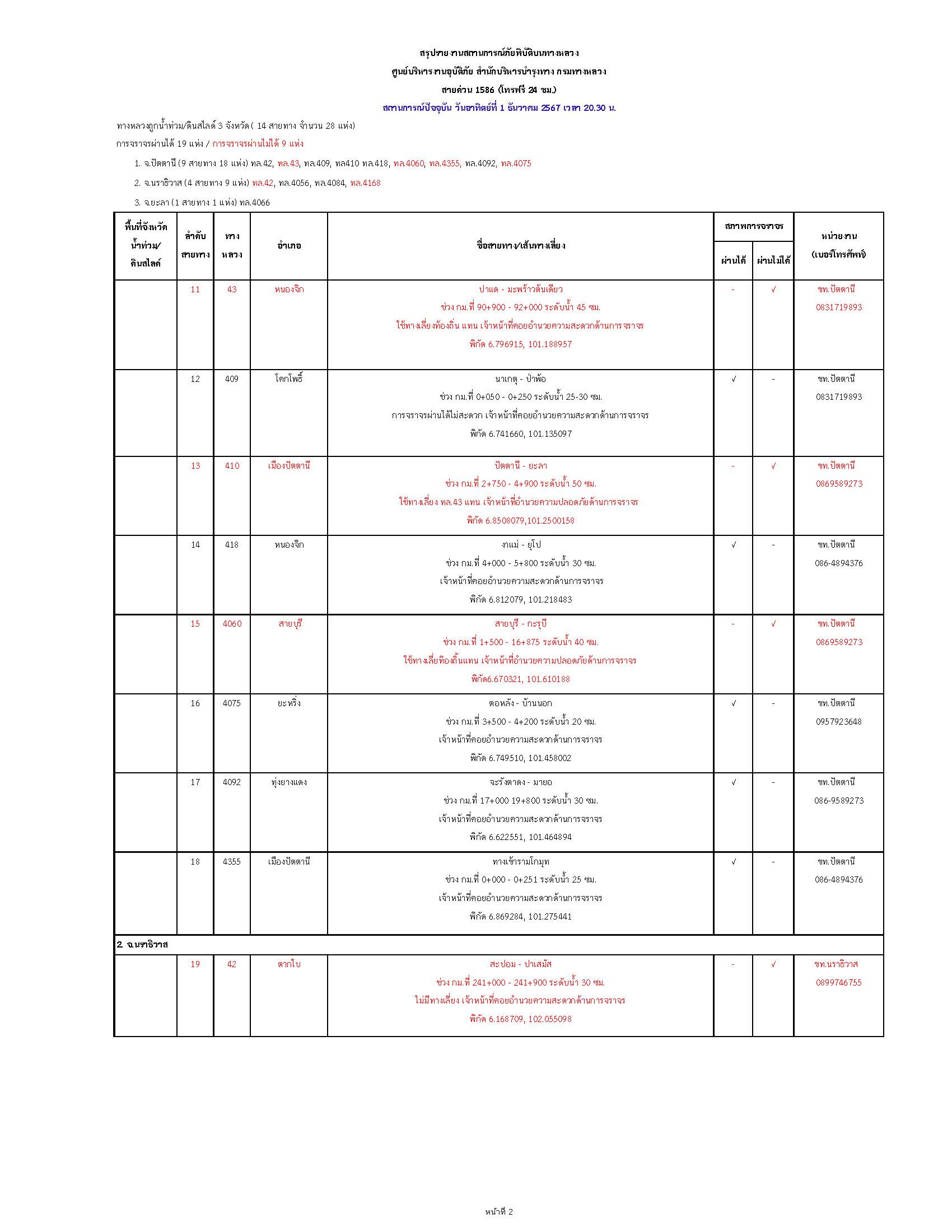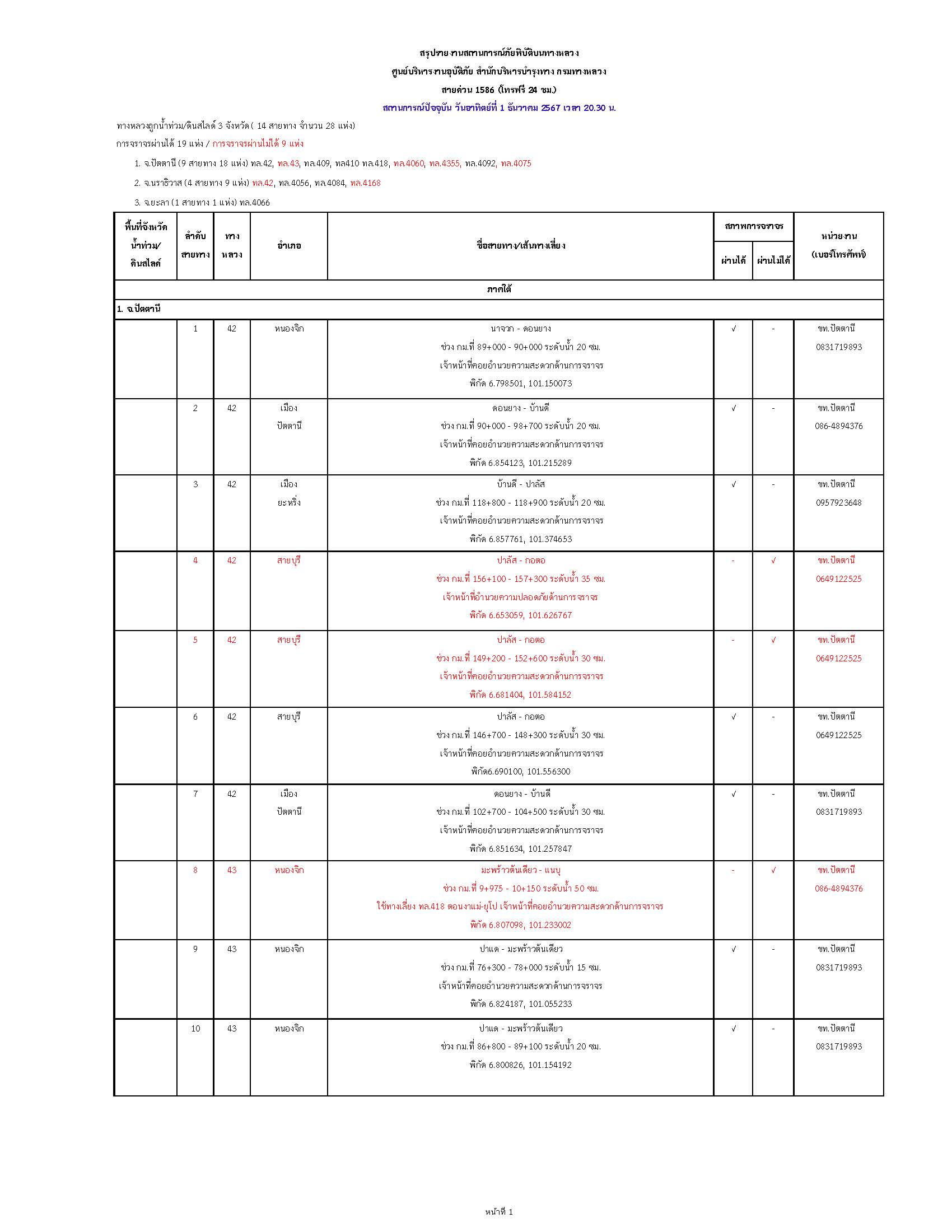 กรมทางหลวงขอรายงานสถานการณ์ น้ำท่วม และดินสไลด์ ในโครงข่ายทางหลวง