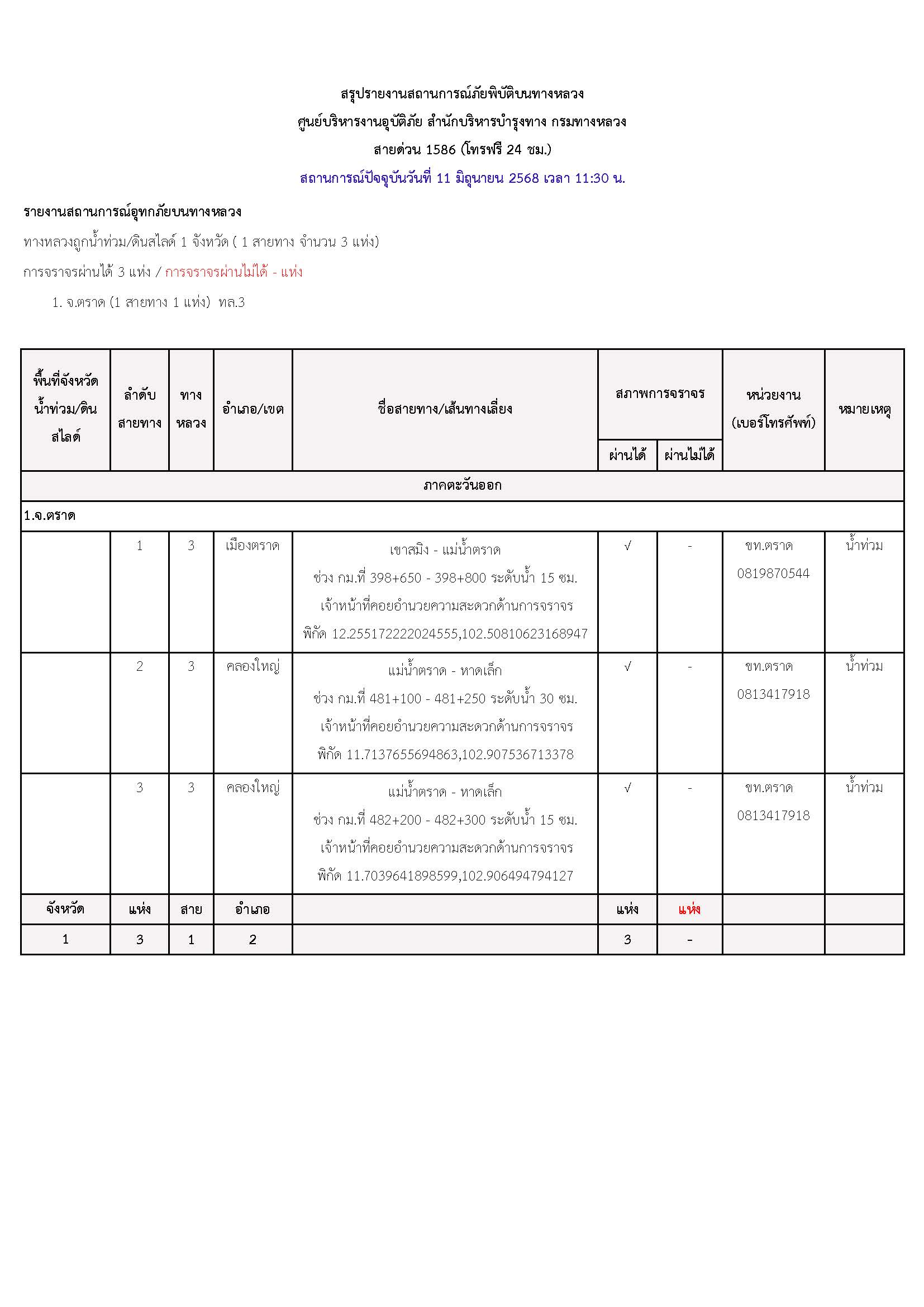 กรมทางหลวงขอรายงานสถานการณ์ น้ำท่วม และดินสไลด์ ในโครงข่ายทางหลวง