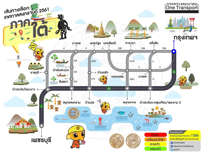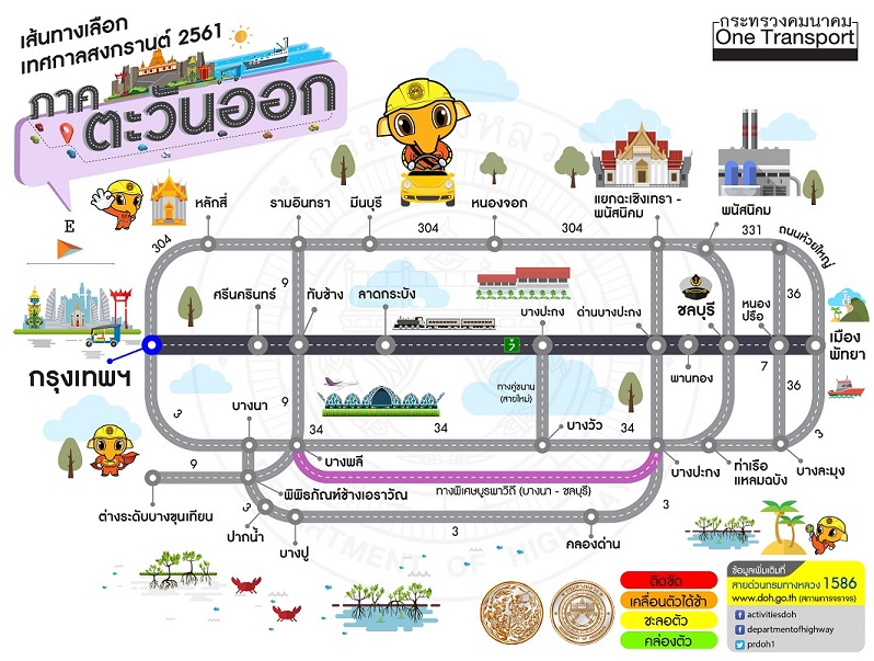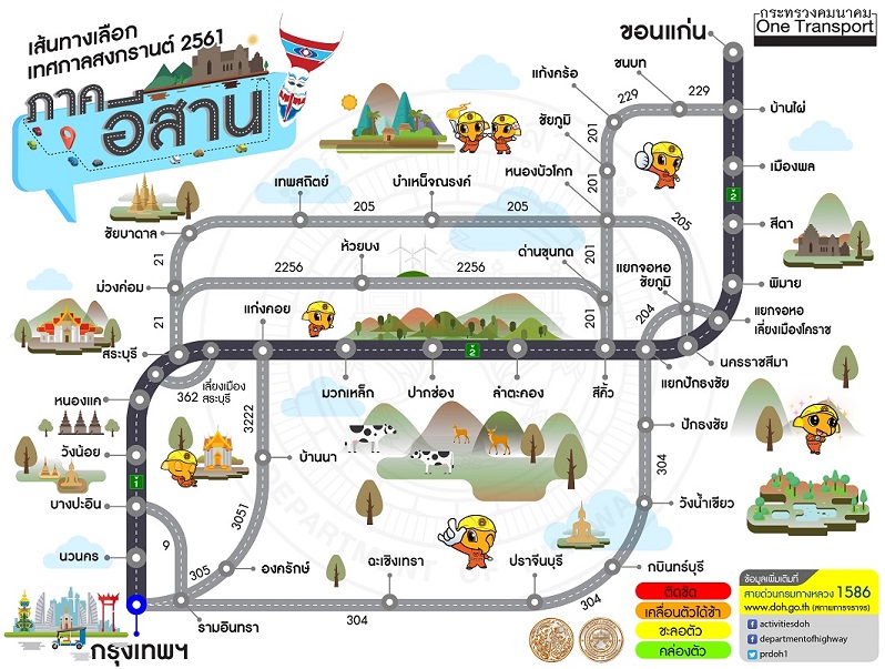 กรมทางหลวงแนะนำเส้นทางการเดินทางจากกรุงเทพ ฯ มุ่งสู่ภูมิภาค ช่วงเทศกาลสงกรานต์ 2561 พร้อมแอพพลิเคชั่นแสดงสภาพการจราจรบนทางหลวง