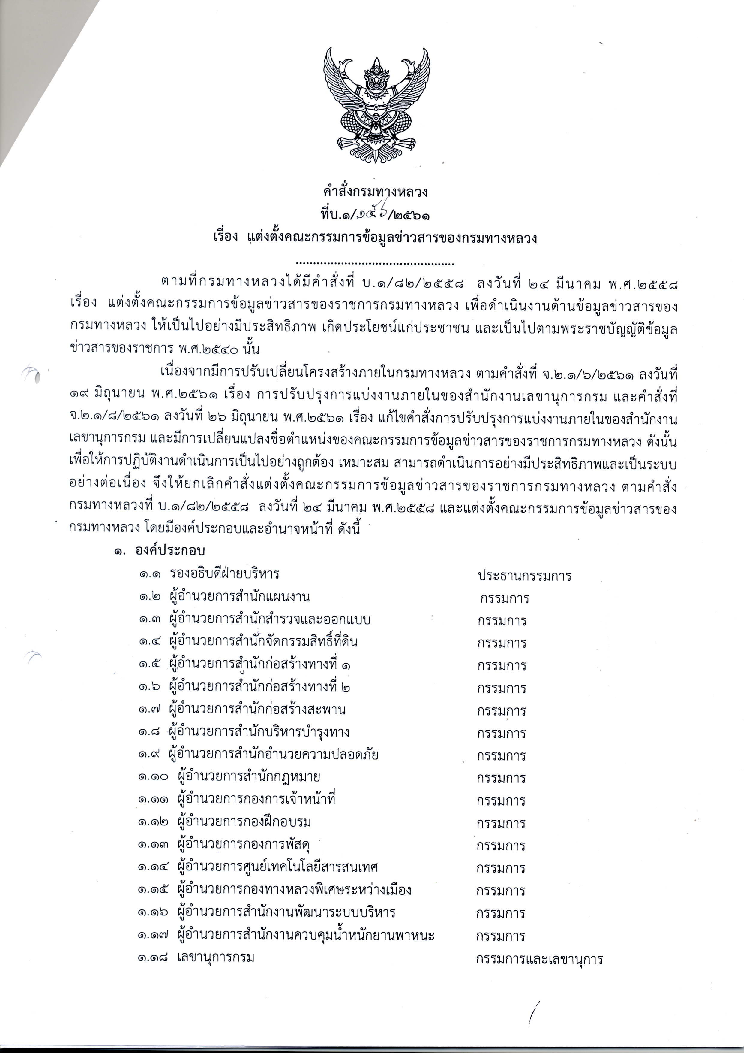 คำสั่งกรมทางหลวง ที่ บ.1/156/2561 ลงวันที่ 30 พฤศจิกายน 2561