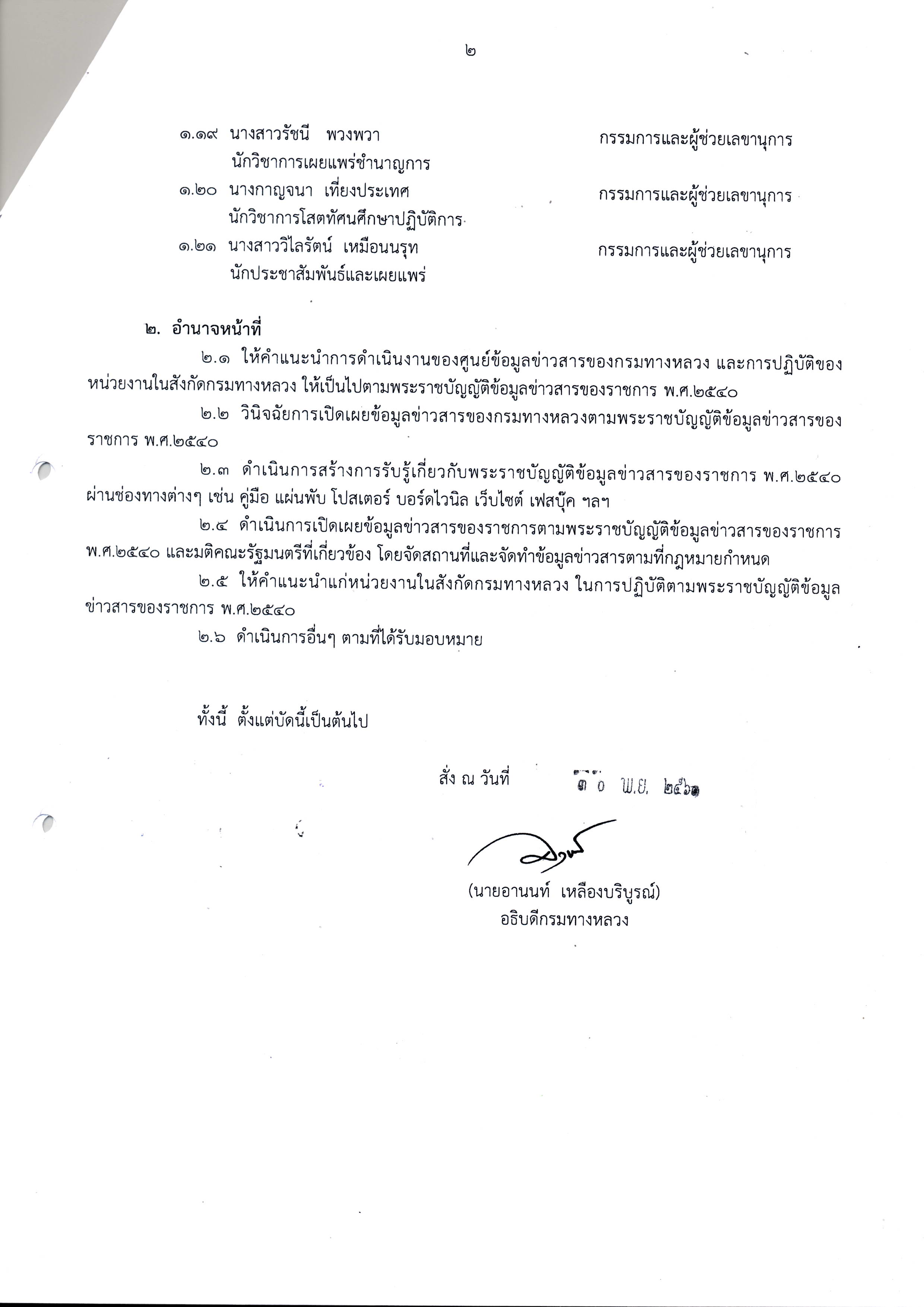 เรื่อง แต่งตั้งคณะกรรมการข้อมูลข่าวสารของกรมทางหลวง